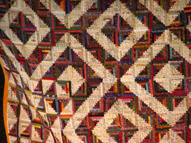 This log cabin quilt was exquisite.  I love log cabin quilts!  And I liked this one so much I took multiple pics.