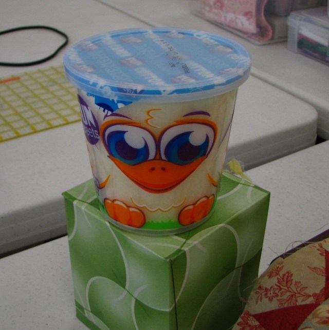Pam got this cute little bug candle holder who got to live on her sewing machine.