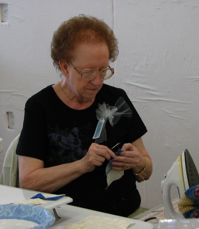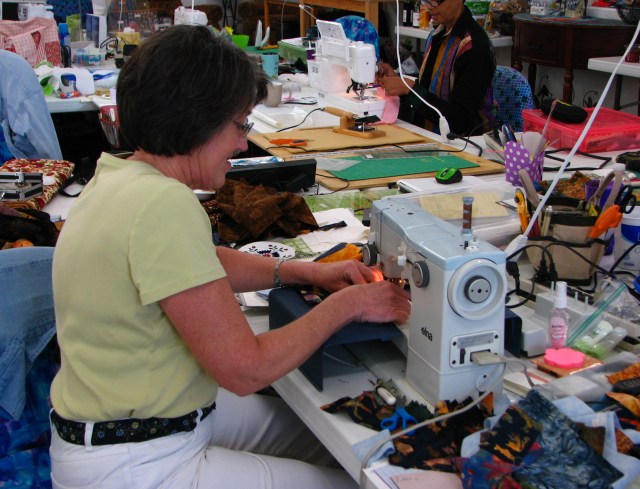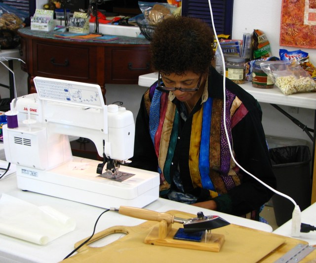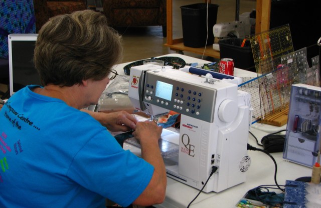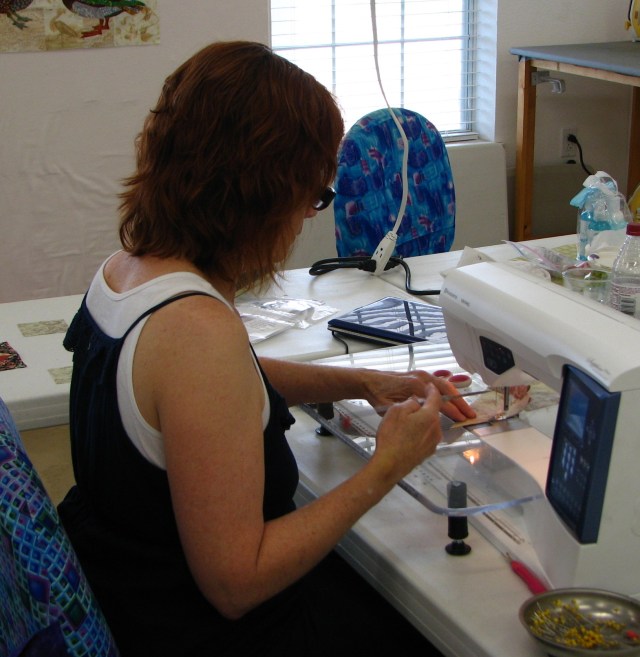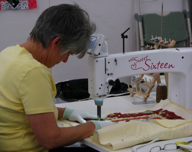 Pam with her nose to the grindstone on her new HQ Sweet Sixteen.
