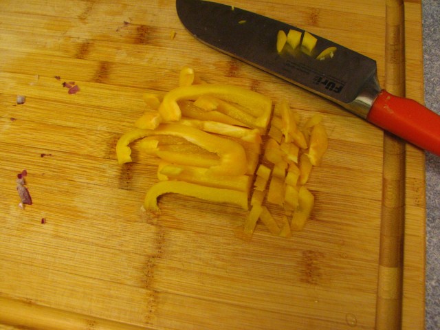 Then chop up a yellow bell pepper……