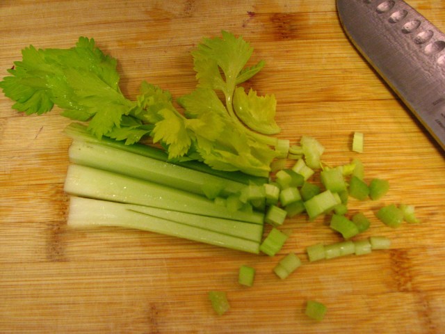….. and a couple stalks of celery. I like to add the leafy part of the celery too. It packs a punch of extra flavor.