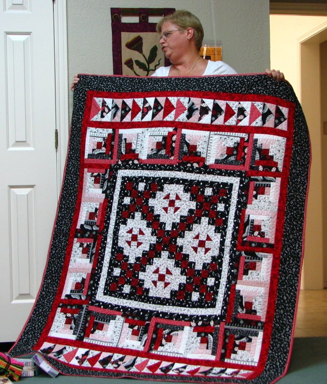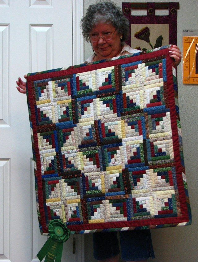 A fabulous log cabin by Claudette. Complete with the ribbon it won when she entered it in a quilt show.
