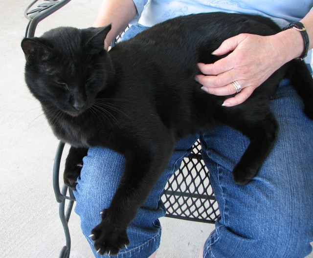 Lynda discovered how stress-relieving it can be to have a purring cat in your lap. Well, except for those talons this one has for claws. Ouch.