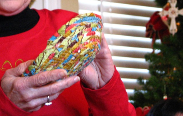 Kay started things off with this lovely fabric bowl she made. Creativity is the name of the game with this group.