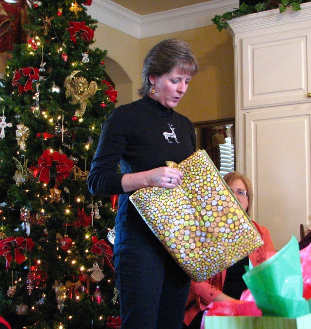 Remember our Same Fabric Challenge? It’s a part of our Christmas party each year. You’ve seen the fabric all year long on the edges of this blog. One of these days I might get around to making something out of mine. It was a busy year for me. Excuses, excuses.