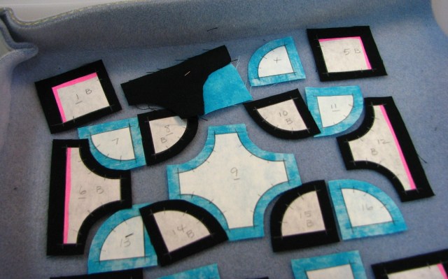 Wow, I’m impressed with all the exact markings on the freezer paper patterns. Is that how these are to be done from directions in the book? I just learned about using freezer paper for needle turn applique, obviously I don’t get out much and am very behind the times. I think you are doing very well. Loved all the cute and beautiful Etc.s Are those scarfs really knitted almost looks like tatting.
