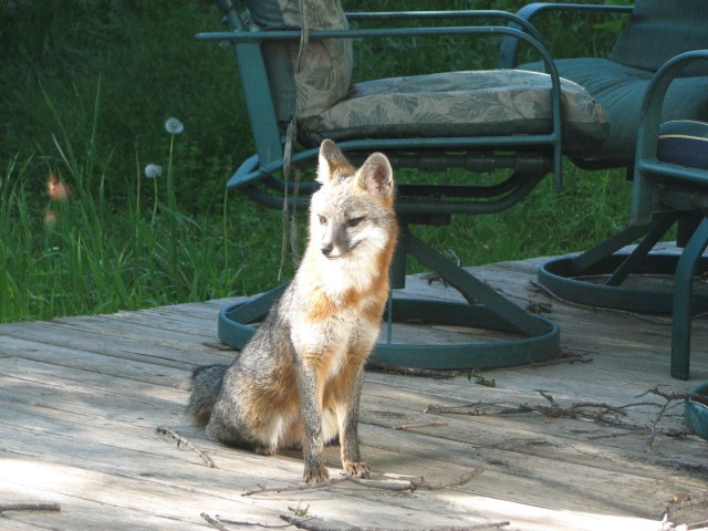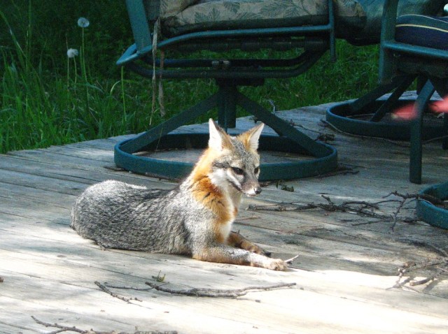 Wow, the fox looks so comfy on the deck. How neat to see. Makes me want to go out and pet / feed it. I know, not a good idea 🙂