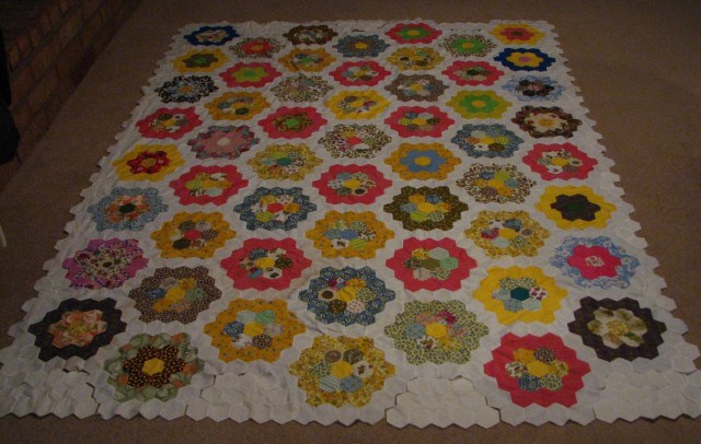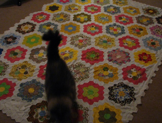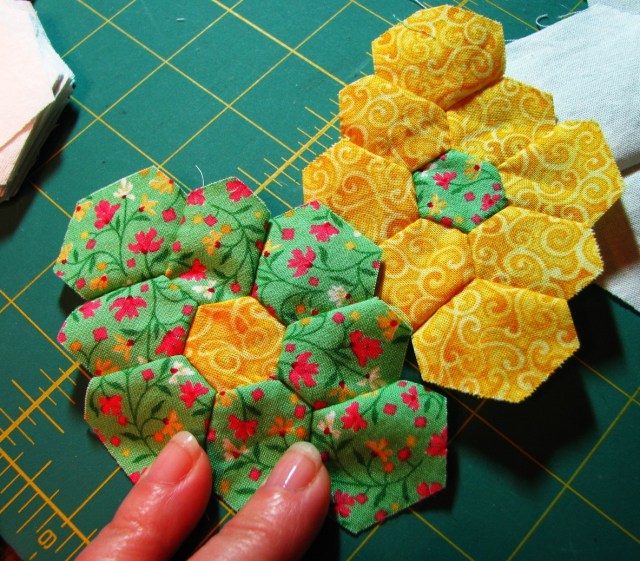 Wow, you’re really making quick progress on that hexagon quilt. It looks wonderful! Hope you were finally able to get to your destination.