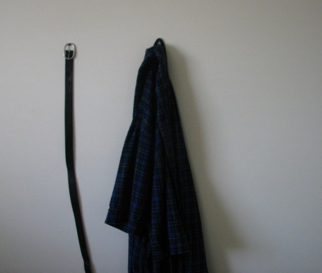 Artwork on the opposite wall.  It’s a man’s apartment.  What can I say.  But that is my belt.  When you can’t beat ’em, join ’em.