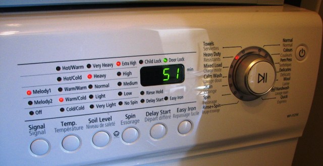 Lots of buttons on the front.  Thankfully they are in English.  Otherwise I might have to hire someone to do the wash.