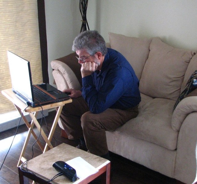Here’s his favorite place when he gets home from work.  I am glad that I can now picture him sitting here with the laptop, reading about the news of the day.  Just before he calls me on Skype.  I look forward to my next visit to Montreal.  Maybe I’ll get used to the French?  One can always hope.