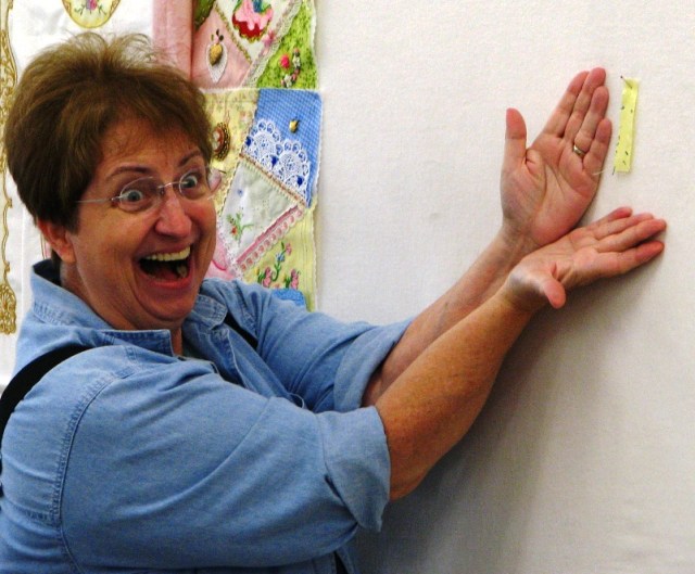 We all thought Dori was trying to give us a new way to display things on the design walls.  Just tack some fabric up there and make it look like you’re doin’ somethin’!  But then Patti set me straight and showed me….