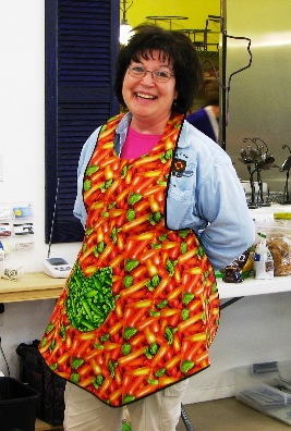 Too Much Orange for Linda Apron.  Even though Linda made this cute apron, Madelyn had to be a model.    Too much orange in it for Linda to allow it to touch her body!
