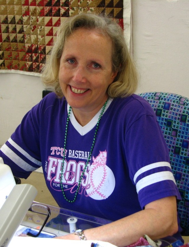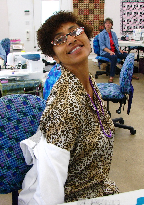 Fat Quarter Padded Shoulder Straps.  Sue models the latest use for fat quarters.  Quilters are very creative when it comes to comfort at retreat.  Those straps can be a real bummer and we all have loads of extra fat quarters going to waste, don’t we?