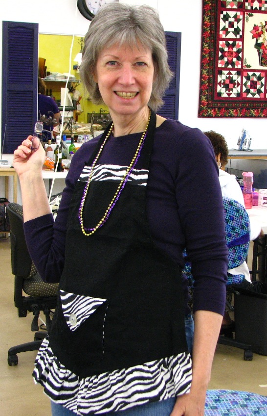 Love my hoodie and mine mysteriously appeared in my machine bag when it came home with Madelyn via the CA girls! I did figure that one out……………..but didn’t have anything to do with your zebra apron and it is sooooo cute!