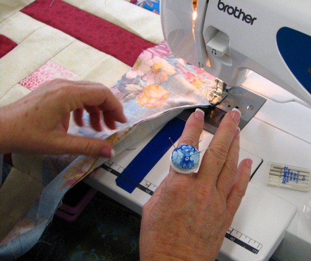 Finger Pincushion.  Hottest item at this retreat.  Everyone needs one to match every outfit.  You can have one too!  See yesterday’s blog for giveaway.