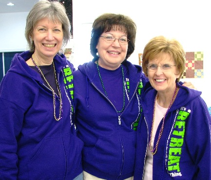 Oh Barb, this Retreat was so fun!!! Loved all your posted memories! We had zebra-apron mysteries, delicate finger pin-cushions, ORANGE carrot aprons, wine cork head-gear, medically correcting posture “helpers” plus purple & lime smiles for all!!! What a blast!!!