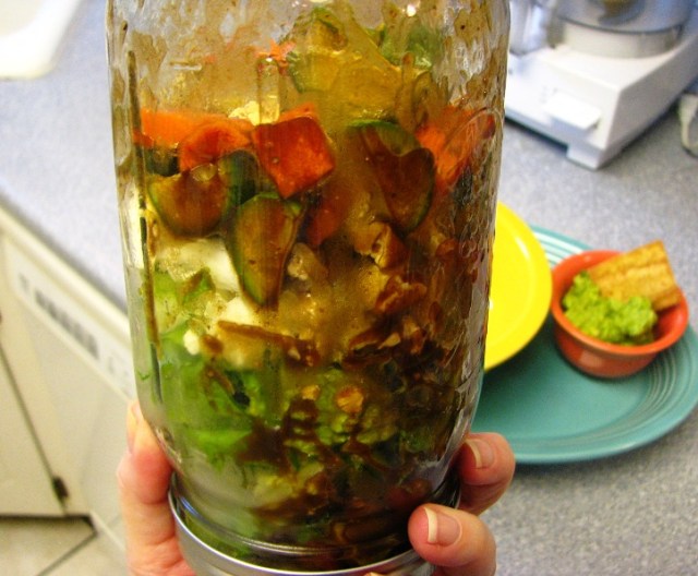 Here’s the good part.  When you’re ready to have a salad, you just take the jar out of the fridge…..