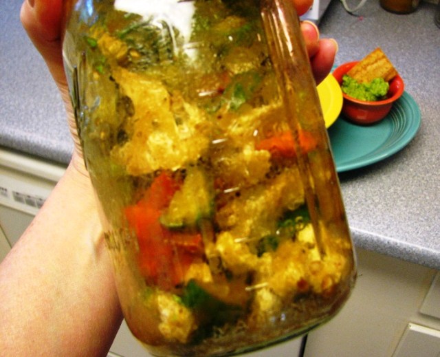 What an absolutely brilliant idea!! I’ve got a few Mason jars in the cupboard that are going to get pressed into service on Saturday. Perfect timing too — as the local cauliflower is just coming in and looks delicious! Now I’m hungry. Think I’ll go have a salad. 🙂
