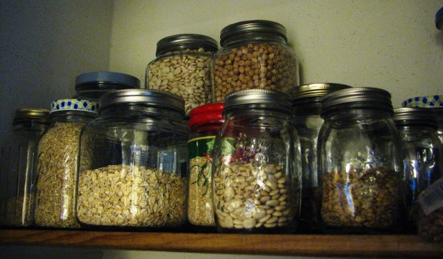 This shelf in my pantry holds all kinds of jars filled with beans, oatmeal, rice, more beans and cereal.  So nice to see at a glance what’s on the shelf.
