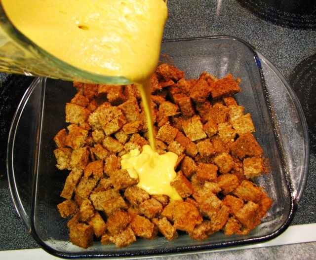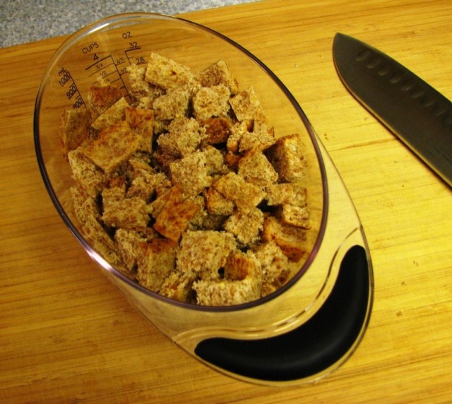 Oh! And cubes of crusty bread. I used Ezekiel bread, but you can use anything you want.