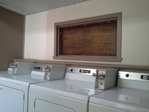 No need to crawl into the dryers for warmth.  Soon, I think, the door will be boarded up too.  And winter will be here.  Summer is definitely a thing of the past.  One last trip to the laundry room for me.  Before the polar bears take over.