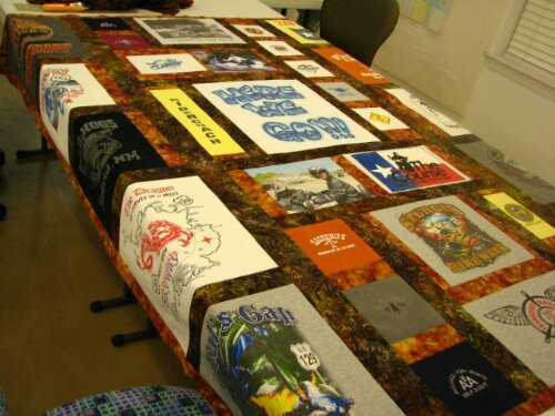 Peggy is working on this T-shirt quilt. That has since left this table, hopped up on the design wall and has two borders added. I can’t even take pictures fast enough. They are outdated before I can get them from the camera to the blog. Sigh.