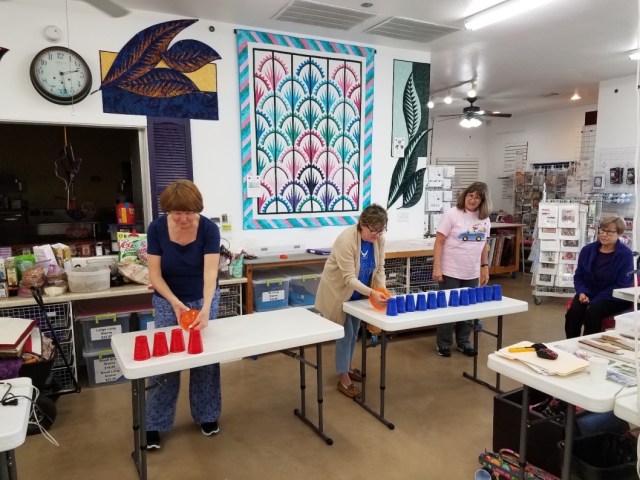 Barb, I’m in Austin and wondering if you know the pattern for that gorgeous clamshell quilt on the wall? Looks like you guys are having too much fun. The Compass Center is a great place to share some memories.