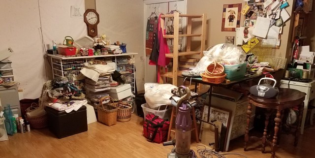 See? not getting any better. Well, maybe a bit. I see an empty shelving unit there! So much to do…..