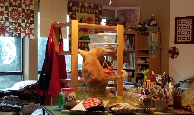 Your quilting room helpers are the stars of the post! Pappy really did manage to get almost everywhere – it was fun checking each photo to see where he might be. I can’t wait to see photos from today with your wonderful new long-arm.