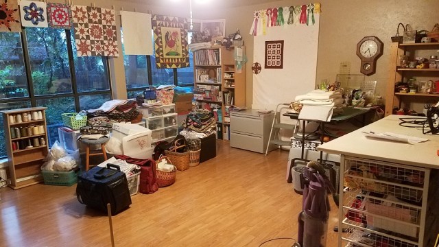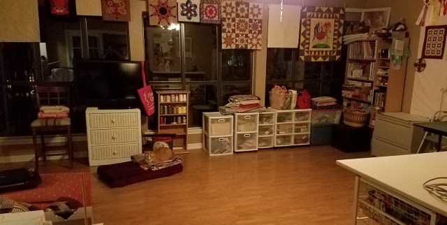 Leave the vacuum cleaner hidden away, that is a wonderful space, and a huge lotta work to get it all ready. Excited, I would be too. Enjoy today, as we are almost into your tomorrow already down here. p.s. Did you know that someone once had to take out a window to get her long arm frame into the room? This is true, I read it recently, but cannot remember where.