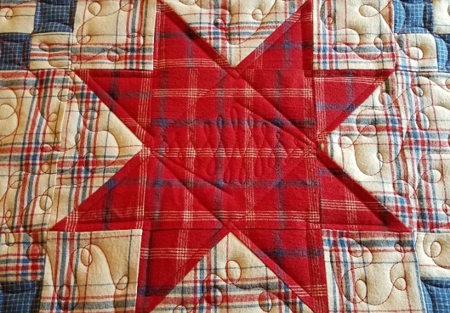 9. That’s a very lovely quilt and great quilting. Especially love the fabric and star pattern combination, it looks so cozy