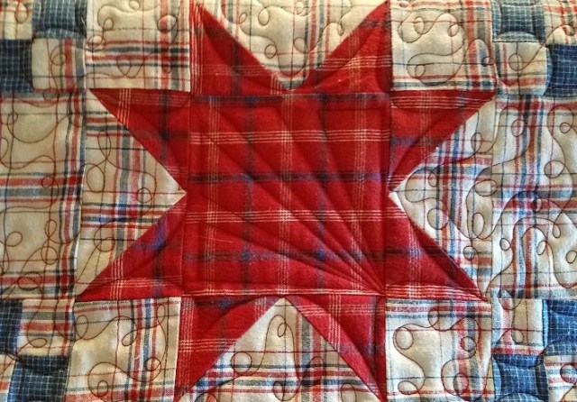 Angela quilted this star.  I should have had her sign it, right?  Oh, well.  I know.  I did one to match but hers is much better.  Hey, she’s been quilting a lot longer than I have!