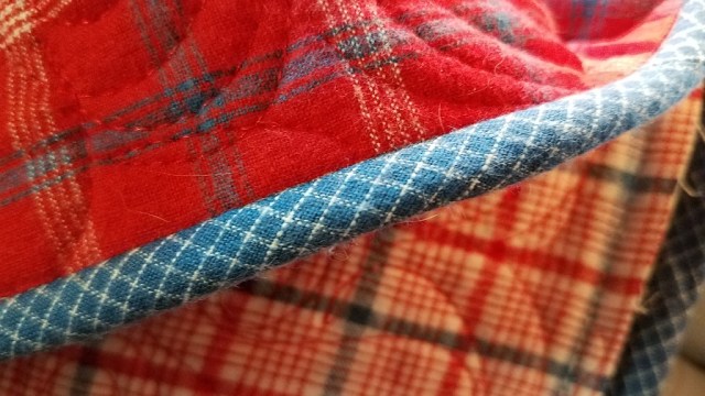 I had to entice Pappy away from the quilt so I could stitch the binding on!